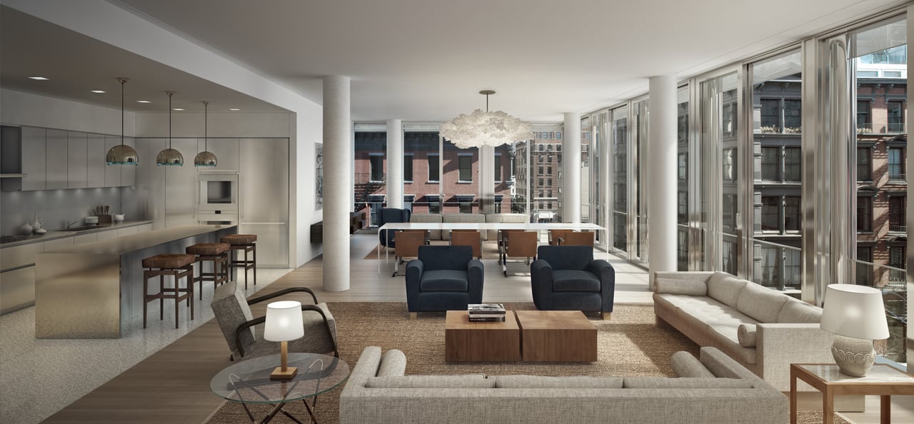Located in SoHo’s Cast Iron Historic District, 42 Crosby Street brings forward-looking architecture grounded by context to a landmarked neighborhood. The design evokes the essential qualities of SoHo’s cast-iron buildings—their uniform composition, column, and spandrel vocabulary, and use of pre-fabricated construction techniques—articulating them through a strong modern design.